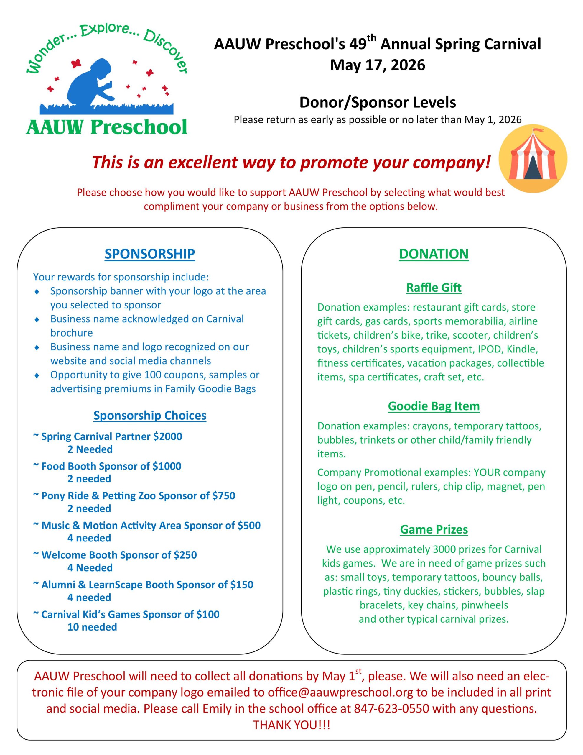 Special Thanks to our 2026Spring Carnival Sponsors!